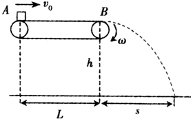 2、简答题 如图所示,水平传送带的长度L=10m,皮带轮的半径R=0.1m,皮带轮以角速度ω顺时针匀速转动.现有一小物体(视为质点)从A点无初速度滑上传送带,到B点时速度刚好达到传送带的速度v0,越过B点后做平抛运动,落地时物体速度与水平面之间的夹角为θ=45°.已知B点到地面的高度h=5m,g=10m/s2,求: