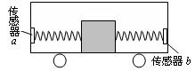 1、填空题 (2分) 如图所示的装置可以测量小车在水平路面上做匀变速直线运动的加速度.该装置是在车箱前、后壁各安装一个压力传感器a和b,中间用两根相同的轻质弹簧压着一个质量为4.0kg的滑块,滑块可无摩擦滑动.小车静止时,传感器a、b的读数均为10N.若当传感器a的读数为7N时,小车运动加速度的方向是? (填“向左”或“向右”),加速度大小为? m/s2.