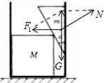 5、选择题 如图所示,直立于水平地面的矩形筒中靠筒壁放着正方体铁块,其右上方顶着一个光滑的、质量为m的斜劈.则下列判断正确的是( )