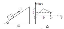 3、计算题 (14分)如下图甲所示,质量为m=1kg的物体置于倾角为=37°固定斜面(足够长)上,对物体施以平行于斜面向上的拉力F,t1=1s时撤去拉力,物体运动的部分