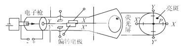 2、选择题 如图所示,示波管是示波器的核心部件,它由电子枪、偏转电极和荧光屏组成,如果在荧光屏上P点出现亮斑那么示波管中的