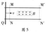 1、选择题 (2010·广东卷)16. 如图5所示,平行导轨间有一矩形的匀强磁场区域,细金属棒PQ沿导轨从MN处匀速运动到M’N’的过程中,棒上感应电动势E随时间t变化的图示,可能正确的是(?)