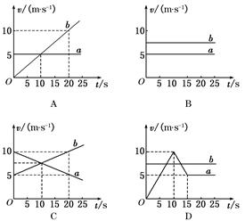 本题解析:v-t图线与t轴所围图形的面积的数值表示位移的大小.A、C两图中在t=20 s时a、b两车的位移大小分别相等,故在20 s时b车追上a车;B图中b车一直领先,间距越来越大,D图中a车在前7.5 s一直落后,在7.5 s~12.5 s间尽管a车速度大于b车,但由于前7.5 s落后太多未能追上,12.5 s后va<vb,故a车不能追上b车.