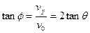 故速度方向与v0的夹角Φ=arctan(2tanθ)
