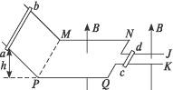 3、简答题 如图5-1-8所示,光滑平行导轨仅其水平部分处于竖直向上的匀强磁场中,一根长为2 m的金属杆cd静止在水平轨道JK上,另一根质量为m的金属杆ab从斜轨高为h处由静止开始下滑,运动中两杆始终与轨道垂直且接触良好,两杆之间未发生碰撞.已知左边水平轨道的宽度是右边水平轨道宽度的两倍,在ab杆离开NQ前,两杆都做匀速运动,且磁场的磁感应强度大小为B.求两杆匀速时的速率.