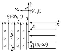 2、计算题 (19分)在图所示的坐标系中,x轴水平,y轴垂直,x轴上方空间只存在重力场,第Ⅲ象限存在沿y轴正方向的匀强电场和垂直xy平面向里的匀强磁场,在第Ⅳ象限由沿x轴负方向的匀强电场,场强大小与第Ⅲ象限存在的电场的场强大小相等。一质量为m,带电荷量大小为q的质点a,从y轴上y=h处的P1点以一定的水平速度沿x轴负方向抛出,它经过x= -2h处的P2点进入第Ⅲ ]象限,恰好做匀速圆周运动,又经过y轴上的y= -2h的P3点进入第Ⅳ 象限,试求: