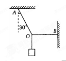 3、计算题 如图所示,轻绳OA一端系于天花板上,与竖直方向的夹角为30°,水平轻绳OB的一端系于竖直墙上,O点挂一重物.如果绳OA能承受最大拉力是300N,求