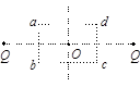 5、选择题 两个带电量均为Q的正点电荷,固定于两点,O是两电荷连线的中点.矩形abcd的中心也在O点,且ad平行于两电荷的连线,a、b、c、d四点的