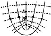 本题解析:因为A点电场线最稀疏,C点最密集,所以A点场强最大,C点最小,故粒子在A、B、C三点的加速度大小关系