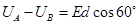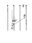 3、选择题 如图所示,匀强电场场强E=100 V/m,A、B两点相距10cm、A、B连线与电场线夹角为600,若取A点电势为0,则B点电势为( )