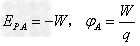 5、选择题  在点电荷 Q形成的电场中有一点A,当一个-q的试探电荷从电场的无限远处被移到电场中的A点时,电场力做的功为W,则试探电荷在A点的电势能及电场中A点的电势分别为:?
