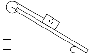 1、选择题 如图所示,倾斜放置的木板上固定有一光滑滑轮,质量为M、m的Q、P两物体用轻质的细绳连接后绕过滑轮,物体Q静止在木板上。已知M=2m,开始木板的倾角为θ,现增加θ角,如果系统仍然能够保持静止状态,则θ角增加过程中下列说法错误的是