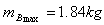 物体B的质量最大为,