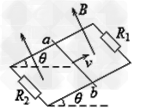 5、选择题 如图所示,在外力作用下,把导体棒加速地拉上倾斜放置的导轨,已知导体棒与导轨间的摩擦因数为μ,不计棒和导轨的电阻,匀强磁场磁感应强度B垂直导轨面向上,则下列说法中正确的是