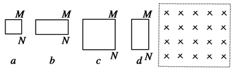 4、选择题 用相同导线绕制的边长为L或2L的四个闭合导体框,以相同的速度匀速进入右侧匀强磁场,如图所示。在每个线框进入磁场的过程中,M、N两点间的电压分别为Ua、Ub、Uc、Ud。下列判断正确的是: