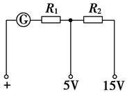3、填空题 如图所示为一双量程电压表的示意图.已知电流表G的量程为0~100 μA,内阻为600 Ω,则图中串联的分压电阻R1=________ Ω,R2=________ Ω.