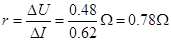 (3)该同学实验完毕,将测量的数据反映在U—I图上(如图所示),根据这一图线,可求出电池的电动势E=___________V,内电阻r=_____________Ω。