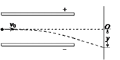 1、选择题 如图所示,质量为m、带电量为q的粒子以速度v0沿平行于两极板的方向射入偏转极板,最后打在荧光屏上.若两偏转极板电压为U,板间距为d,粒子打在灾光屏上的偏转距离为y,粒子从进入电场到打在屏上的时间为t,则下列说法正确的是(?)