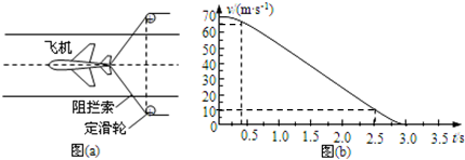 2、选择题 2012年11日,“歼15”舰载机在“辽宁号”航空母舰上着舰成功.图(a)为利用阻拦系统让舰载机在飞行甲板上快速停止的原理示意图.飞机着舰并成功钩住阻拦索后,飞机的动力系统立即关闭,阻拦系统通过阻拦索对飞机施加作用力,使飞机在甲板上短距离滑行后停止.某次降落,以飞机着舰为计时零点,飞机在t=0.4s时恰好钩住阻拦索中间位置,其着舰到停止的速度---时间图线如图(b)所示.假如无阻拦索,飞机从着舰到停止需要的滑行距离约为1000m.设航母始终静止,重力加速度的大小为g.则( )
