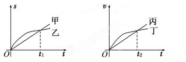 5、选择题 如图所示的位移(s)—时间(t)图象和速度(v)—时间(t)图象中给出四条图线,甲、乙、丙、丁代表四辆车由同一地点向同一方向运动的情况,则下列说法正确的是