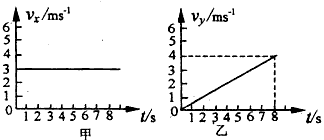 (2)t=8.0s时,vx=3.0m/s,vy=4.0m/s,物体的速度大小