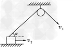 3、填空题 如图 所示,用细绳绕过定滑轮拉一水平面上的物体,某时刻,拉绳的速度为v1 ,物体在水平面上运动的速度为v2 ,此时拉物体的绳与水平面的夹角为α,则v1 与v2 的关系为____
