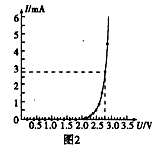 (2)该实验小组根据实验得到的数据,描点绘出了如图2的I-U图像,由图可知,当电压小于2. 00V时,太阳能电池的电阻________(填“很大”或“很小”);当电压为280V时,太阳能电池的电阻约为_______Ω。