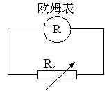 5、实验题 如图所示,将万用表的选择开关置于“欧姆档”,再将电表的两支表笔与负温度系数的热敏电阻(Rt的阻值随温度的升高而减小,随温度降低而增大)两端相连,这时表针恰好指在刻度盘的正中间.若往Rt上擦一些酒精,表针将向?(填“左”或“右”)移动;若用吹风机将热风吹向电阻,表针将向?(填“左”或“右”)移动。