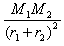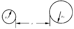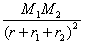 4、选择题 如图,两球的质量均匀分布,大小分别为M1与M2,则两球间万有引力大小为