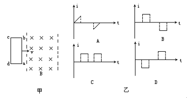 3、选择题 如图甲所示,一个由导体做成的矩形线圈,以恒定速率v运动,从无磁场区进入匀强磁场区,然后出来.若取反时针方向为电流正方向,那么图乙中的哪一个图线能正确地表示电路中电流与时间的函数关系(?)