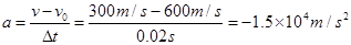 3、计算题 (8分)一子弹击中木板的速度是600 m / s ,历时0.02 s 穿出木板,穿出木板时的速度为300 m/s ,则子弹穿过木板时的加速度大小和方向?