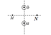 3、选择题 有两根长直导线a、b互相平行放置,图8所示为垂直于导线的截面图。在图示的平面内,O点为两根导线连线的中点,M、N为两根导线附近的两点,它们在两导线的中垂线上,且与O点的距离相等。若两导线中通有大小相等、方向相同的恒定电流I,则关于线段M N上各点的磁感应强度的说法中正确的是?