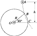 1、简答题 如图所示,在O点放置一个正电荷,在过O点的竖直平面内的A点自由释放一个带正电的小球,小球的质量为m、电荷量为q,运动的轨迹如图中虚线所示.它与以O为圆心、R为半径的圆(图中实线表示)相交于B、C两点,O、C在同一水平线上,∠BOC=30°,A点到OC的竖直高度为h.已知带电小球通过B点时的速度为v,求: