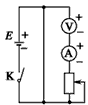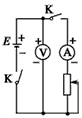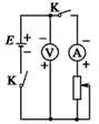 可用理想电压表V、理想电流表A、变阻器R以及电键K和导线等器材来测量某一电源E的电动势和内阻,如图所示。下面给出了四个电路图,图中“+”、“-”代表电源的正负极和电表的正负接线柱,正确的电路图是( ? )