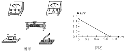(3)根据实验记录,画出的U-I图线如图(乙)所示,从中可求出待测干电池的电动势为E=_________V,内电阻为r=_________Ω。
