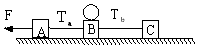 1、选择题  用力F拉ABC三个物体在光滑的水平地面上运动,现在中间的物体上加一个小球,它和中间的物体一起运动,且原来拉力F大小不变,那么加上小球之后,两段绳中拉力Ta,Tb的变化情况是