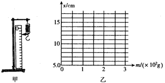 (1)根据所测数据,在图乙所示的坐标纸上作出弹簧指针所指的标尺刻度x与砝码质量m的关系曲线。