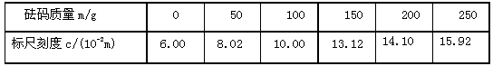5、实验题 几个同学合作用如图甲所示装置探究“弹力和弹簧伸长的关系”,他们先读出不挂砝码时弹簧下端指针所指的标尺刻度(图中标尺等分刻度只是示意图),然后在弹簧下端挂上砝码,并逐个增加砝码,依次读出指针所指的标尺刻度,所得数据列表如下:(弹簧弹力始终未超过弹性限度,重力加速度g=9.8 m/s2)