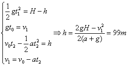 参考答案:解:已知H=224m,a=12.5m/s2,v1=5m/s