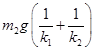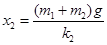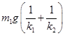 4、选择题 如图示,两木块的质量分别为m1和m2,两轻质弹簧的劲度系数分别为k1和k2,上面木块压在上面的弹簧上(但不拴接),整个系统处于平衡状态.现缓慢向上提上面的木块,直到它刚离开上面弹簧.在这个过程中上面木块上升的高度为(?)