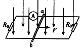 3、计算题 如图所示,有一宽L=0.4m的矩形金属框架水平放置,框架两端各接一个阻值R0=2Ω的电阻,框架的其他部分电阻不计,框架足够长.垂直于金属框平面有一竖直向下的匀强磁场,磁感应强度B=1.0T金属杆ab质量m= 0.1kg,电阻r=1 ,杆与框架接触良好,且与框架间的摩擦力不计,当杆受一 水平恒定拉力F作用,由静止开始运动,经一段时间后电流表的示数稳定在0.6A已知在金属杆加速过程中每个电阻R。产生的热量Q=0.2L.求: