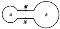 1、计算题 如图所示,用相同的均匀导线制成的两个圆环a和b,已知b的半径是a的两倍,若在a内存在着随时间均匀变化的磁场,b在磁场外,M、N两点间的电势差为U;若该磁场存在于b内,a在磁场外,M、N两点间的电势差为多大?(M、N在连接两环的导线的中点,该连接导线的长度不计)
