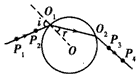 (1)沿P1、P2连线方向的入射光线通过圆形玻璃后的传播方向;