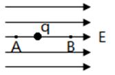 1、选择题 如图,匀强电场的电场强度为E,正电荷q从A点运动到B点,以下说法正确的是