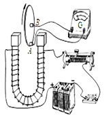 2、填空题 法拉第发现了电磁感应现象之后,又发明了世界上第一台发电机──法拉第圆盘发电机,揭开了人类将机械能转化为电能并进行应用的序幕。法拉第圆盘发电机的原理如图所示,将一个圆形金属盘放置在电磁铁的两个磁极之间,并使盘面与磁感线垂直,盘的边缘附近和中心分别装有与金属盘接触良好的电刷A、B,两电刷与灵敏电流计相连。当金属盘绕中心轴按图示方向转动时,则电刷A的电势?电刷B的电势(填高于、低于或等于);若仅提高金属盘转速,灵敏电流计的示数将?;(填增大、减小或不变);若仅将滑动变阻器滑动头向左滑,灵敏电流计的示数将?(填增大、减小或不变)