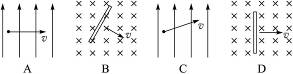 5、选择题 如图所示的4种情况中,磁场的磁感应强度都是B,导体的长度l和运动速度v的大小都相同.产生感应电动势最小的是(?)