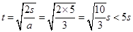 ,C正确;运动5m滑行的时间