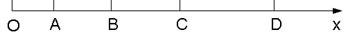 1、选择题 如图,一物体从O点静止开始沿O x方向做匀加速直线运动,物体经过AB、BC、CD段所用时间相同,且AB=2m,BC=4m,CD=6m,则OA的距离是(?)