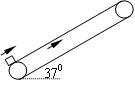 4、计算题 (12分)如图所示,传送带长6 m,与水平方向的夹角,以5 m/s的恒定速度向上运动。一个质量为2 kg的物块(可视为质点),沿平行于传送带方向以10 m/s的速度滑上传送带,已知物块与传送带之间的动摩擦因数μ=0.5,sin370=0.6,cos370=0.8,g=10m/s2。求: