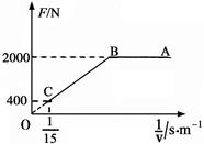 3、选择题 为减少二氧化碳排放,我国城市公交推出新型节能环保电动车,在检测某款电动车性能的实验中,质量为 8×102 kg的电动车由静止开始沿平直公路行驶,达到的最大速度为 15 m/s,利用传感器测得此过程中不同时刻电动车的牵引力F与对应的速度v,并描绘出F-图,如图所示(图中 AB、BO 均为直线).假设电动车行驶中所受的阻力恒定,则(?)